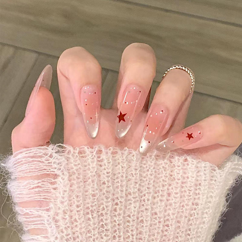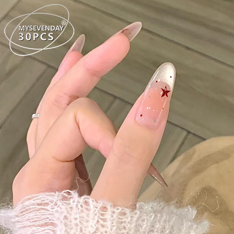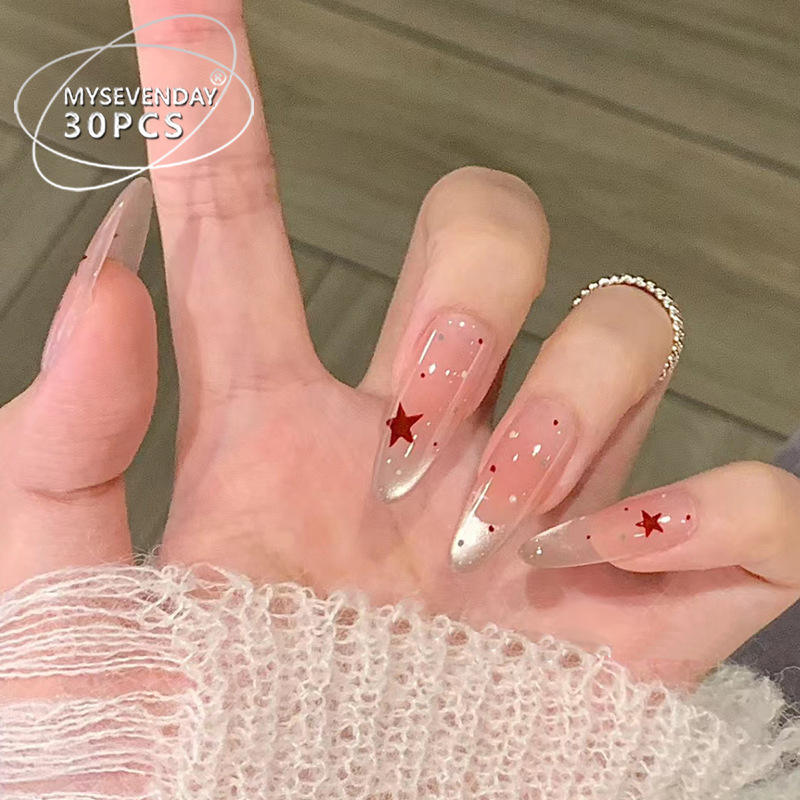 2025 New Year Nails Cat Eye Red Star High-End Handmade Wearable Hot Girl Nail Tips
