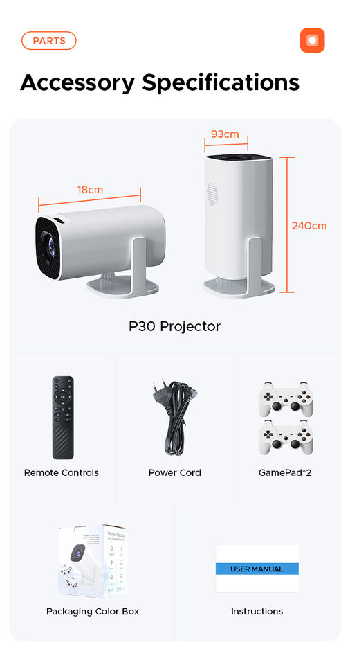 โปรเจคเตอร์พกพา P30 รุ่นใหม่ปี 2025 รองรับความละเอียด 720P และ 4K ระบบ Android 11 ชิปประมวลผล Allwinner H713 บลูทูธ 5.0 แรม 2G สำหรับใช้งานกลางแจ้งและโฮมเธียเตอร์