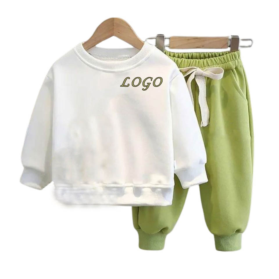 ชุดเซ็ตเสื้อสเวตเชิ้ตและกางเกงจ็อกเกอร์เด็กไซส์ใหญ่ ดีไซน์ใหม่ปี 2025 สำหรับฤดูใบไม้ผลิ ผลิตจากผ้าโพลีเอสเตอร์/คอตตอนสีพื้น ชุดวอร์มเด็กเล็กแบบสั่งทำได้