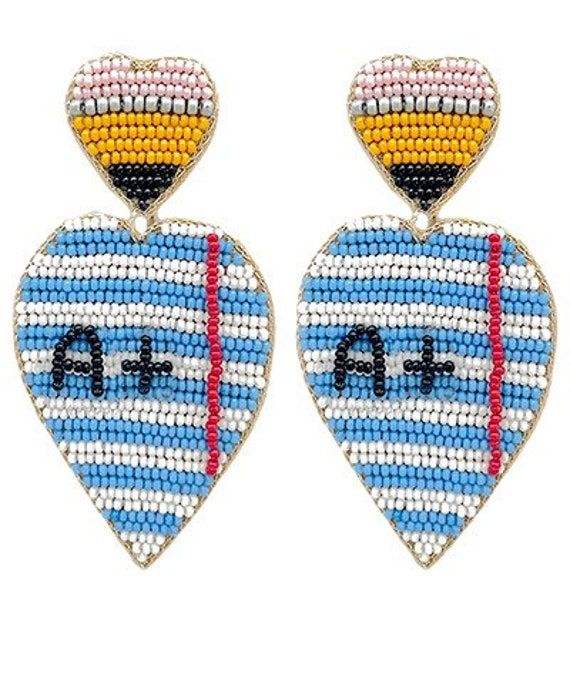 ต่างหูปักลูกปัดแฟชั่นใหม่ปี 2025 สีขาวผสมสีน้ำเงิน ต่างหูลูกปัดแบบมีพู่ห้อย สำหรับขายบน Etsy ในอินเดีย