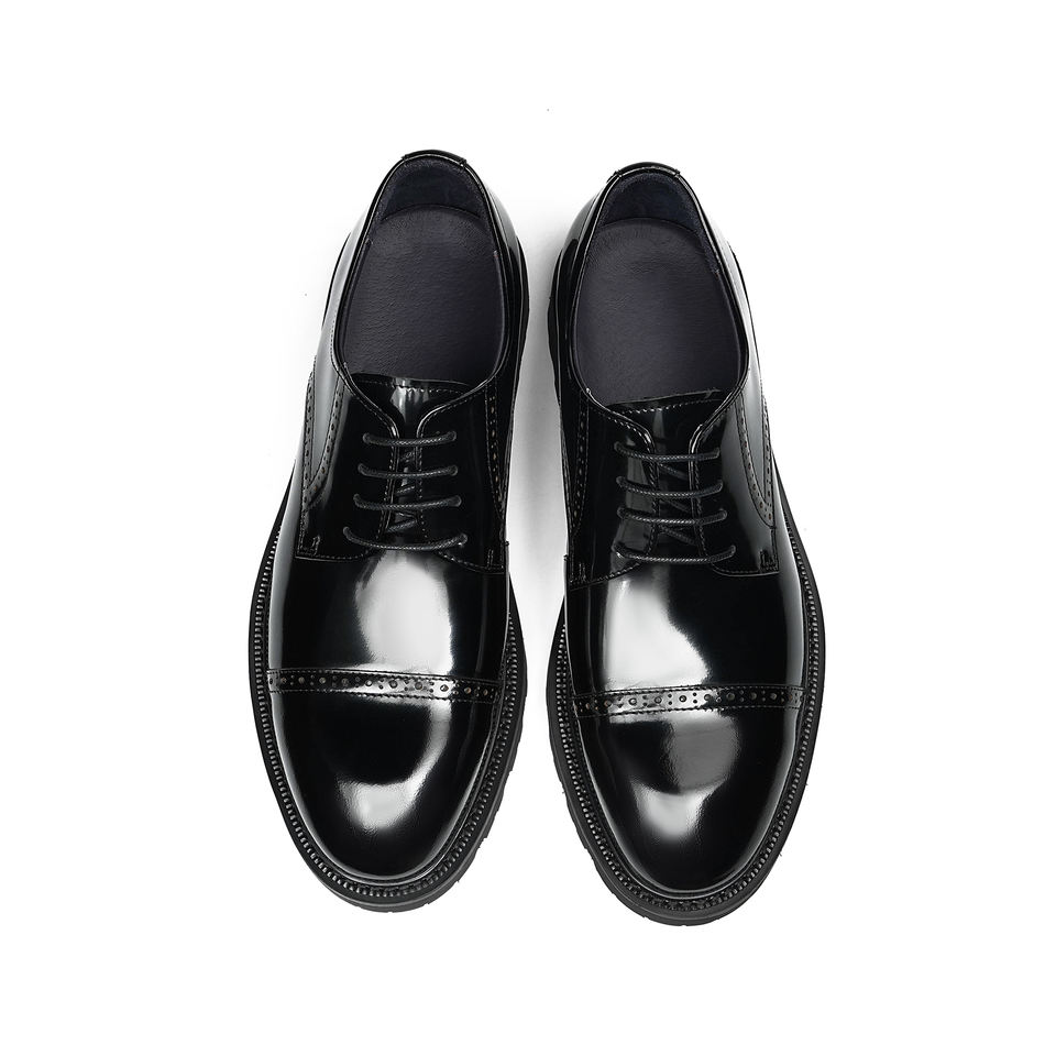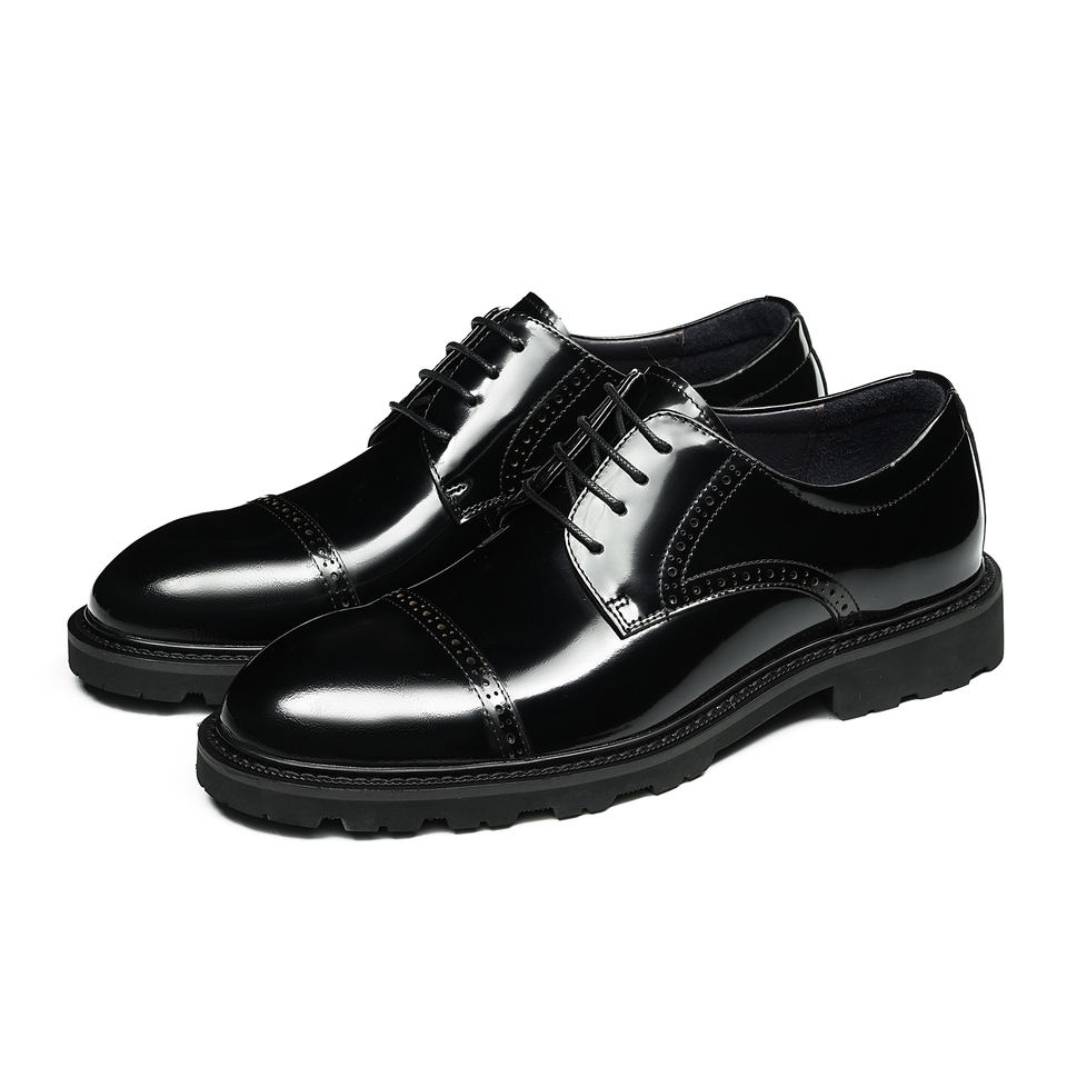 รองเท้าหนังวัวแบบลำลองสำหรับนักธุรกิจรองเท้าผู้ชายรองเท้าส้นสองข้างสไตล์อังกฤษ2025ใหม่