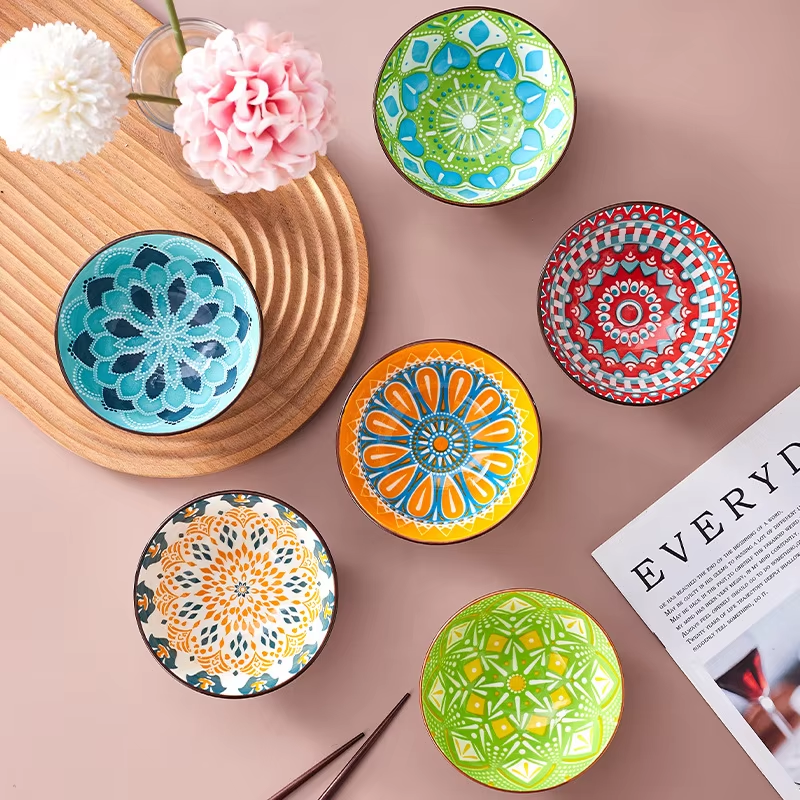 2025รับประทานอาหารสไตล์โบฮีเมียน4.75นิ้วกล่องของขวัญเครื่องใช้บนโต๊ะอาหารเซรามิกสำหรับงานแต่งงาน6ถ้วยชุดของขวัญพอร์ซเลนเครื่องครัว