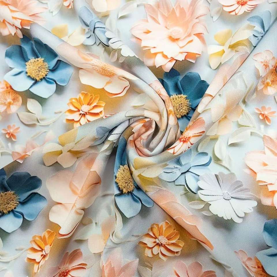 ผ้าใยสังเคราะห์สำหรับชุดเดรสผ้าสแปนเด็กซ์ผ้าใยสังเคราะห์เนื้อนุ่มพิเศษดีไซน์5D 3D พิมพ์ดิจิตอลใหม่ล่าสุด2025
