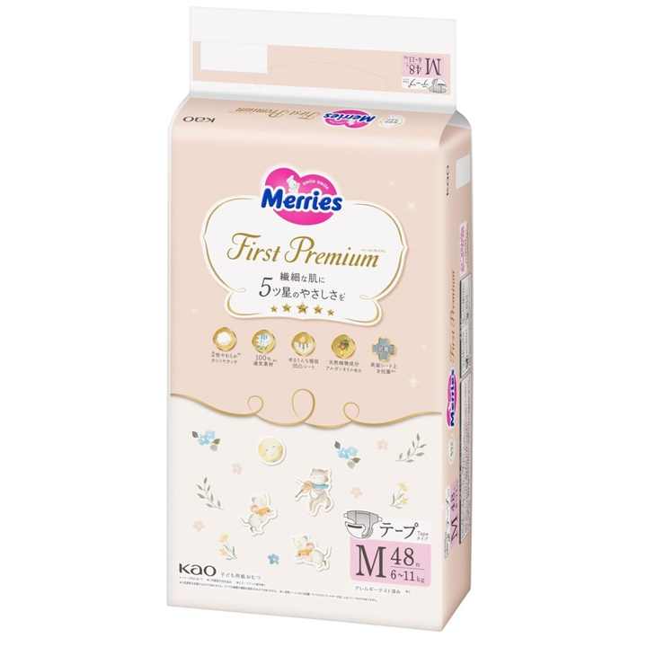 ใหม่ล่าสุด Kao Merries เทป M48ผ้าอ้อมเด็กแบบใช้แล้วทิ้งที่เพิ่มความไวต่อผิวขนาดกลางมีการรั่วไหลขายส่งเป็นจำนวนมาก
