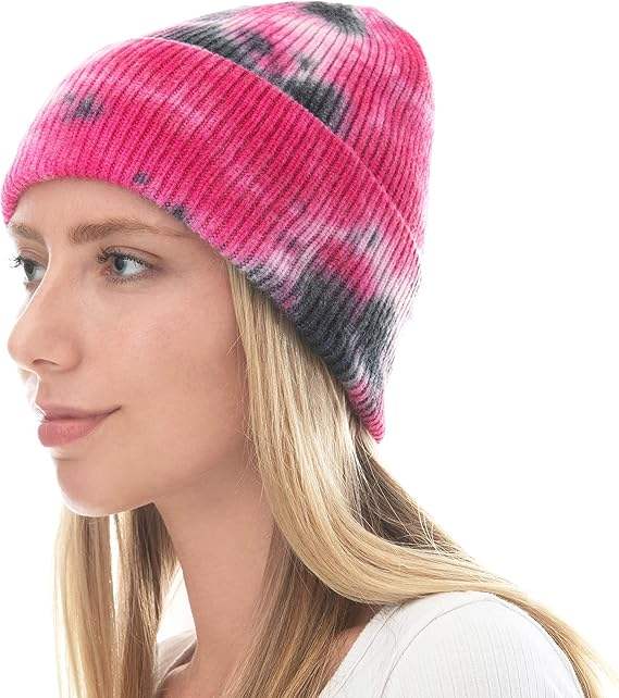 หมวกบีนนี่ไหมพรมอะคริลิกลายริบบิ้นสีรุ้งชมพูฟ้าแบบไล่สี รุ่นใหม่ล่าสุดปี 2025 สำหรับผู้หญิง