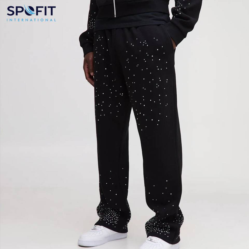 กางเกงวอร์มขาบานสำหรับผู้ชายผ้าฝ้ายเทอร์รี่ผ้า Cordura ขนาดพิเศษกางเกงขาบานลำลองสไตล์ใหม่ล่าสุด2025