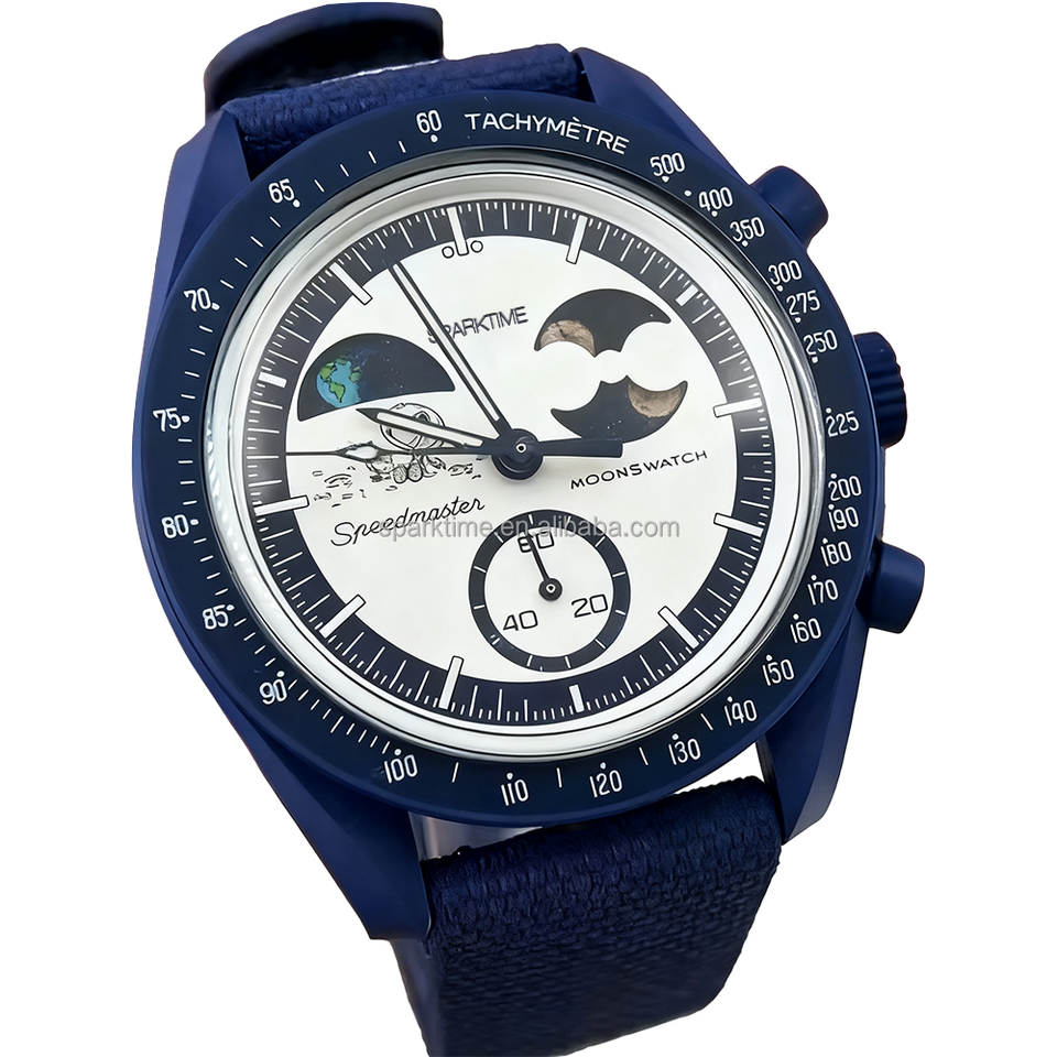 นาฬิกาข้อมือควอตซ์โครโนกราฟพลาสติกสุดฮิตปี 2025 สำหรับผู้ชาย ขายส่ง Moonwatch สำหรับร้านค้าออนไลน์