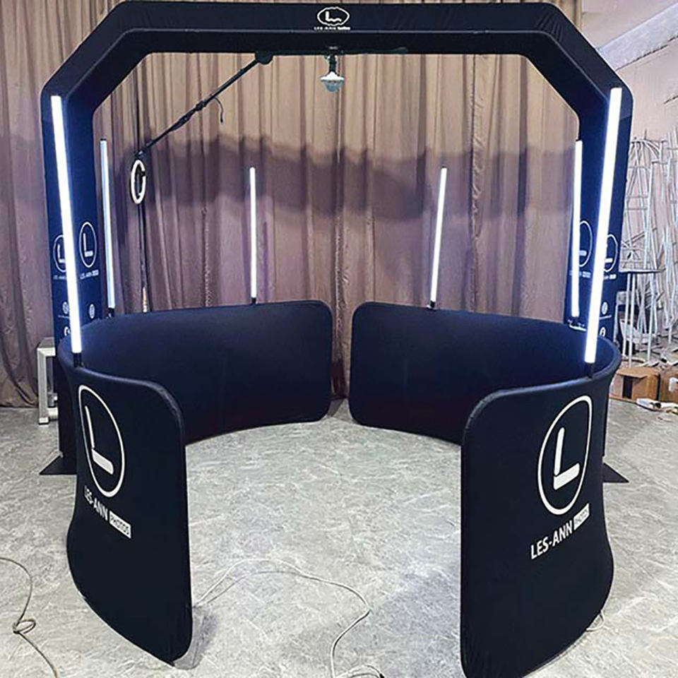 2025บูธแสดง360แบบติดเหนือศรีษะแบบใหม่ล่าสุดบูธถ่ายภาพแบบหมุนได้360องศา RGB ไฟพื้นหลัง360กระจก