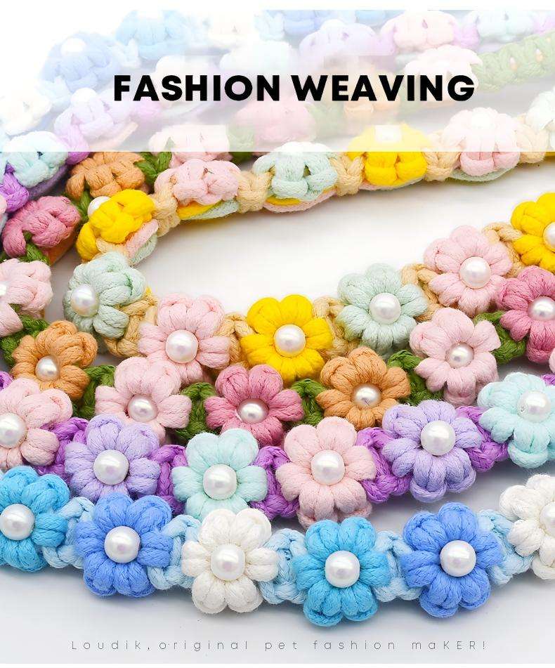 2025 Newly Luxury Fashionable Retractable Handmade Braided Recycled Comfortable Breathable Pet Leashes Lace Flower Pattern for