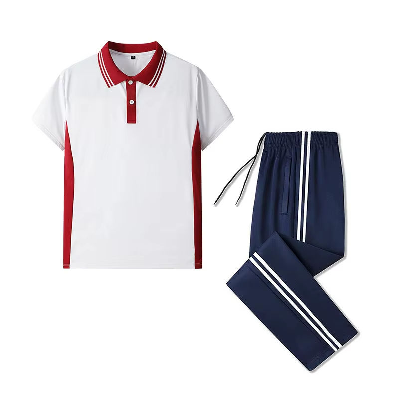2025 O-Neck Primary Polo Shirts Sets for Boys Girls 100% Cotton Casual Solid Embroidery & Logo Printed Kids School Uniform