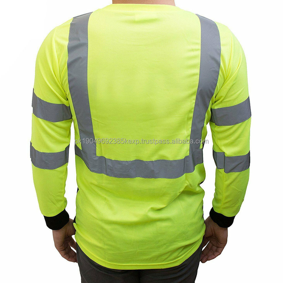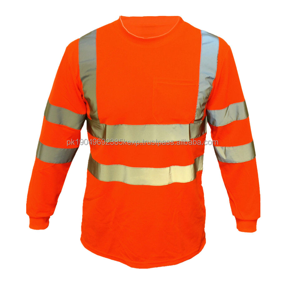 เสื้อทำงานคอกลมแบบสะท้อนแสงสำหรับผู้ชาย ปี 2025 ผลิตตามสั่ง ODM คุณภาพดี แขนยาว เสื้อความปลอดภัยแบบสะท้อนแสง