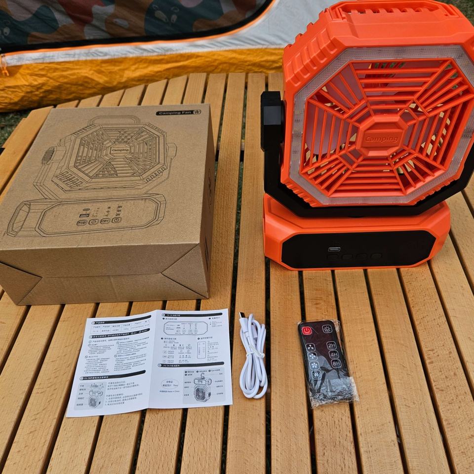 2025 OEM 10000mah Portable Outdoor Automatic Rotation Camping Fan with LED Light with Remote Control