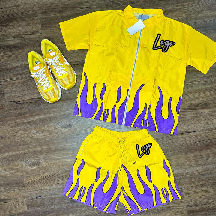 ชุดวอร์มแจ็คเก็ตกันลมแบบสั้น 2 ชิ้น ผ้าไนลอน ปี 2026 รับผลิตตามแบบ OEM พร้อมปักโลโก้