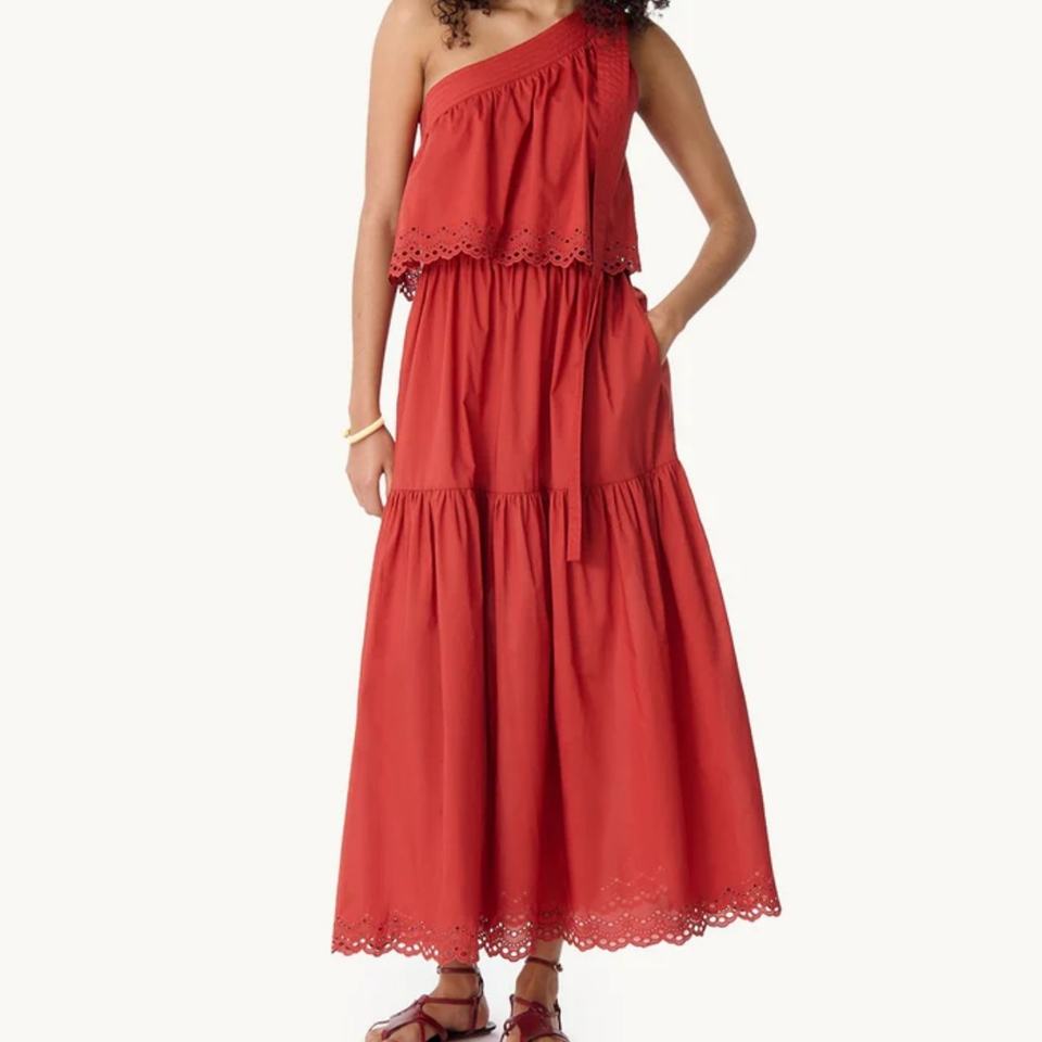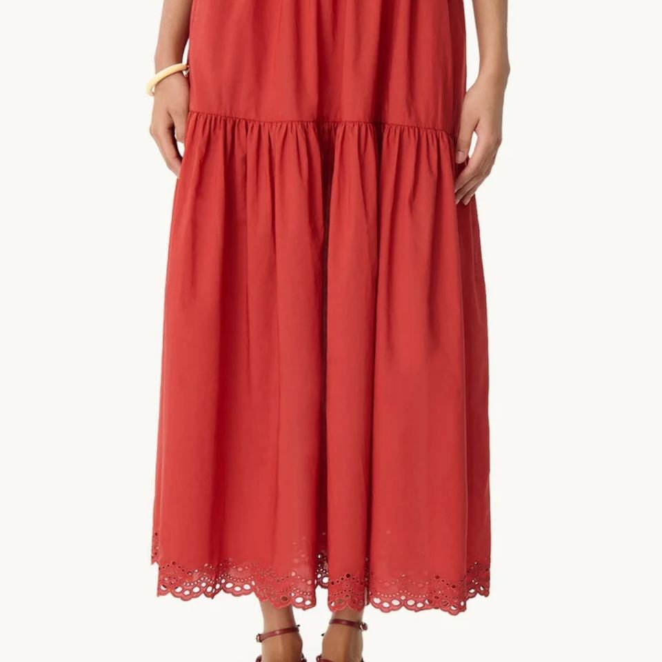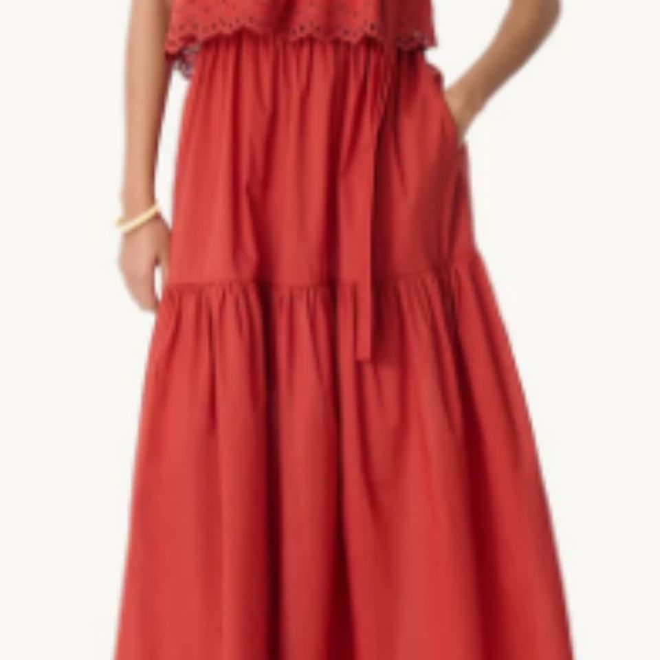 2025 OEM Hot Selling Embroidered Linen Set Women's Summer Dress Set Casual Sleeveless Top and Tiered Maxi Skirt Solid Pattern
