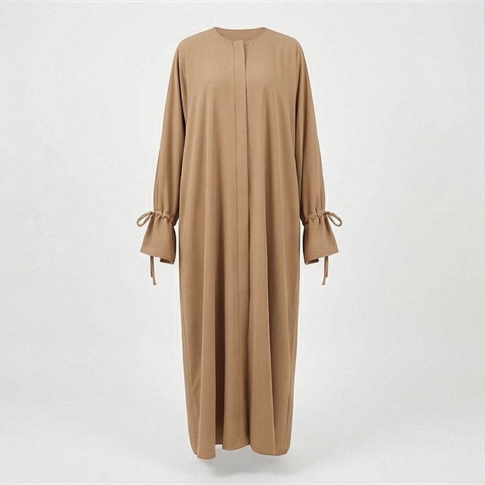 ชุดกิโมโนแบบ OEM ปี 2025 เสื้อคลุมอาบายะ ผ้าโพลีเอสเตอร์เนื้อนุ่มยืดหยุ่นสูง ประดับลูกปัด ความยาวระดับข้อเท้า คอวี แขนยาว สำหรับผู้หญิงมุสลิม เหมาะสำหรับงานปาร์ตี้