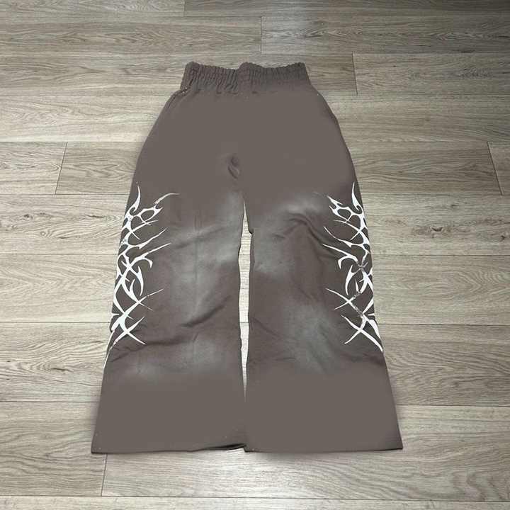 กางเกงวอร์มขายาวทรงตรงเอวกลางผ้าแคนวาสน้ำหนักเบาพิมพ์ลายดิจิทัลสำหรับผู้ชายไซส์ใหญ่ ปี 2025 พร้อมโลโก้ OEM สไตล์วินเทจ