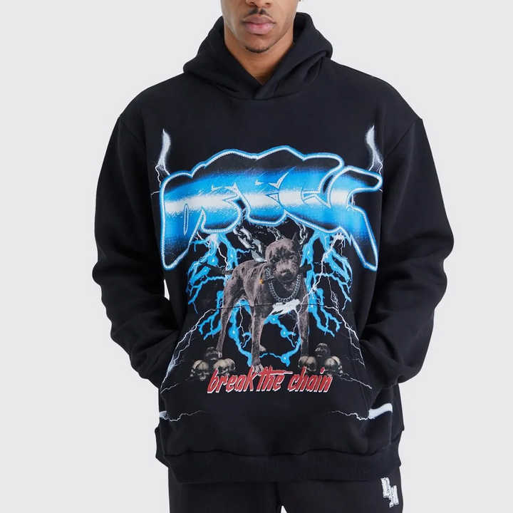 ชื่อผลิตภัณฑ์:เสื้อมีฮู้ดสกรีนลายผู้ชาย