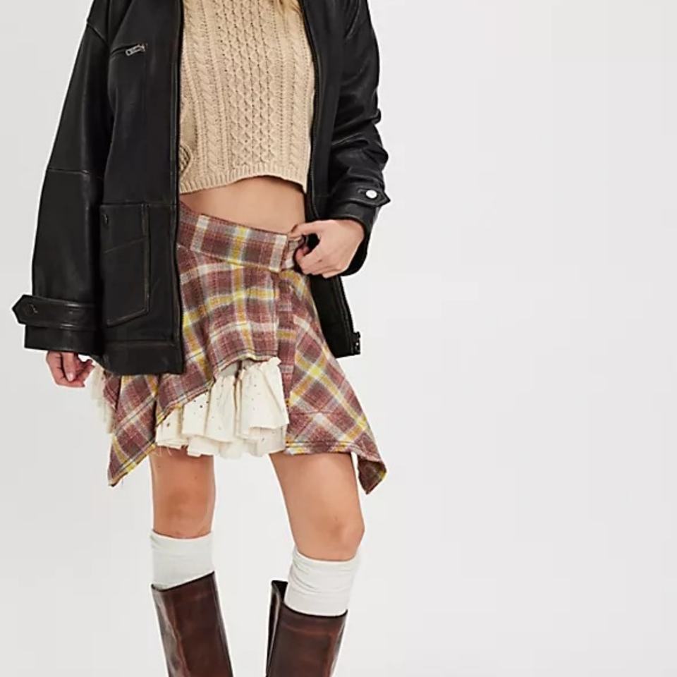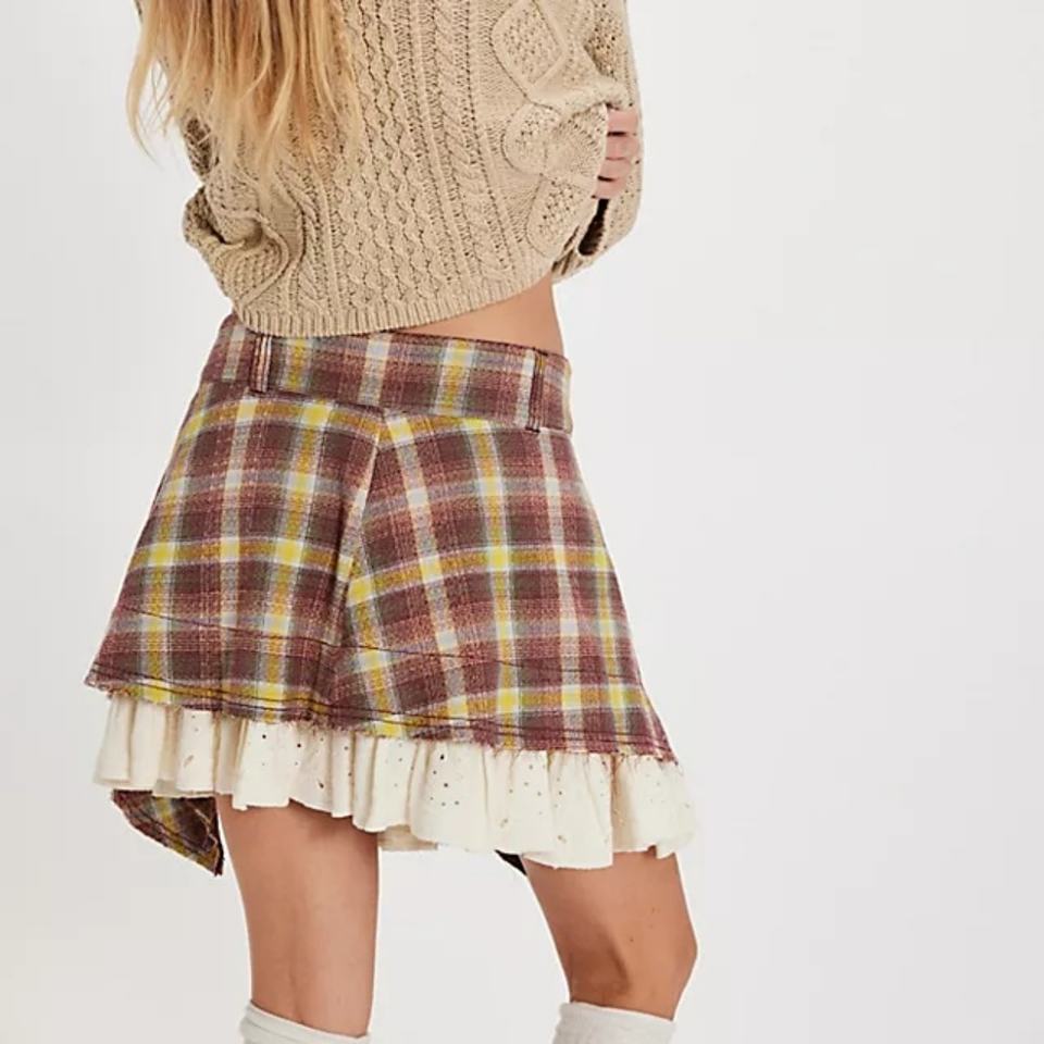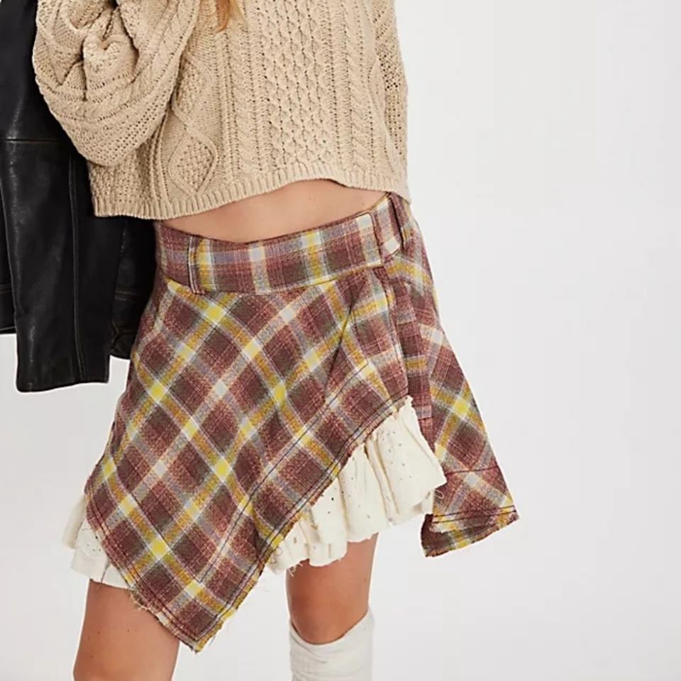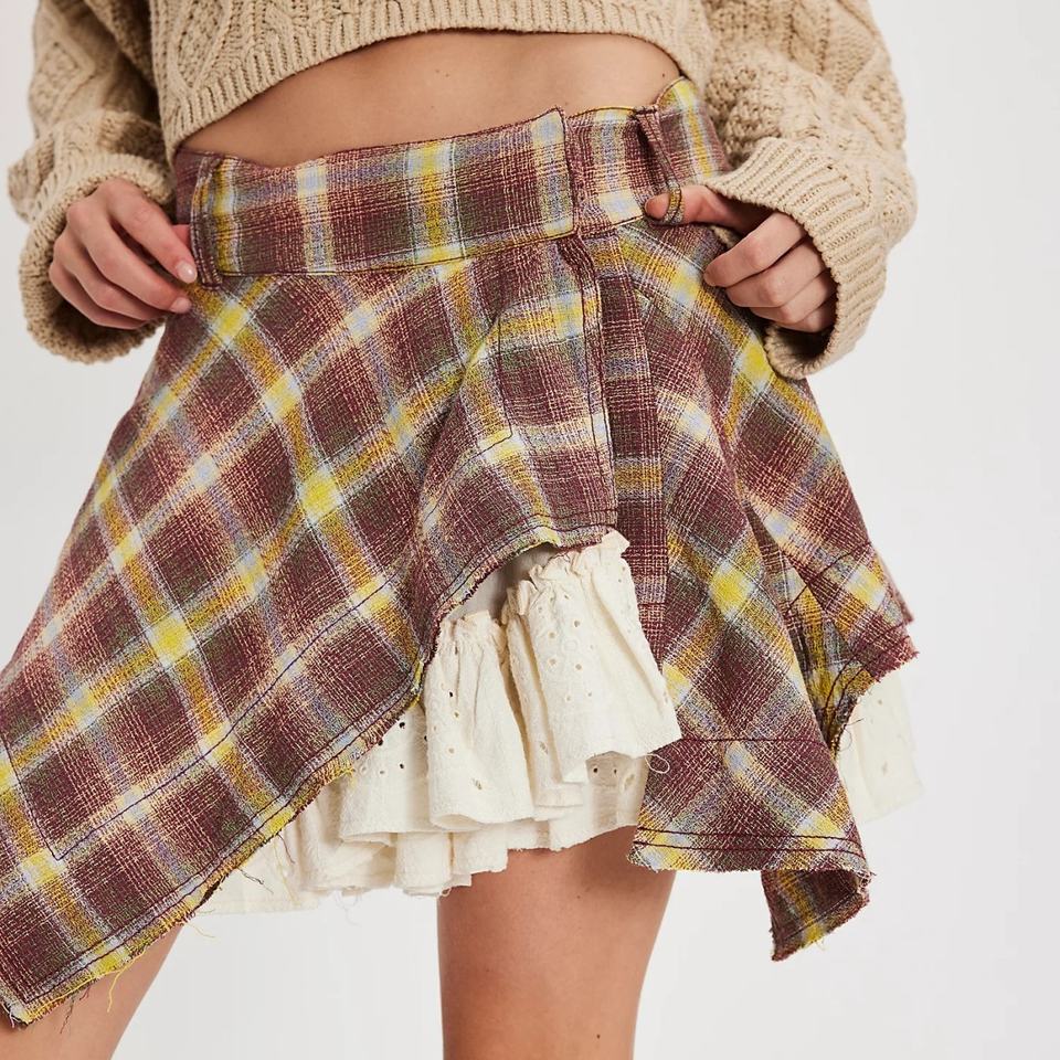 2025 OEM New Style Vintage Plaid Patchwork Skirt Asymmetric Design with Ruffle Detailing for Women's Fashion