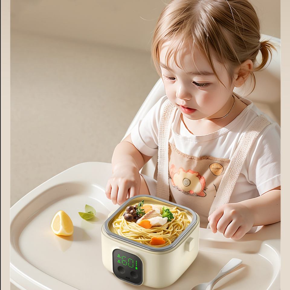 กล่องอุ่นอาหารอัตโนมัติแบบพกพา OEM ปี 2025 ทำจากสแตนเลส ความจุขนาดใหญ่ สำหรับเด็ก ใช้ในรถยนต์และนอกสถานที่ ใช้พลังงานจาก USB/แบตเตอรี่ วัสดุพลาสติก