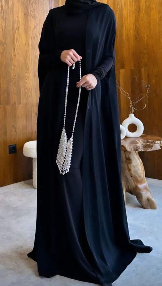 ชุดเดรสดูไบอาบายาของผู้หญิงแขนค้างคาวเปิดแบบสุภาพเรียบร้อยผ้าโพลีเอสเตอร์แห้งเร็วเป็นมิตรกับสิ่งแวดล้อมสำหรับฤดูใบไม้ผลิฤดูใบไม้ร่วงฤดูร้อน2025