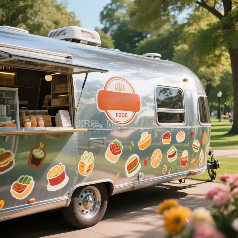 รถพ่วงขายอาหารริมทางกลางแจ้ง