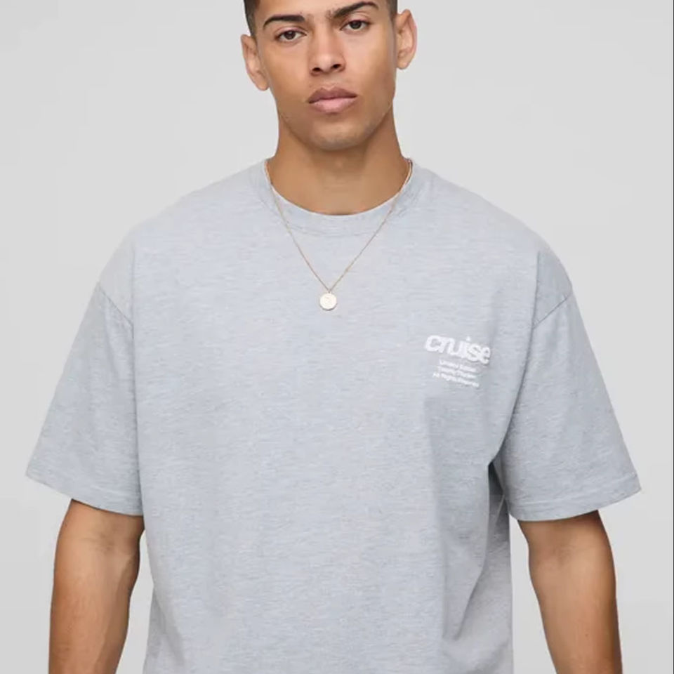 เสื้อยืดโอเวอร์ไซส์ผู้ชายสีเทาพิมพ์ลายสกรีนผ้าฝ้าย 220GSM พรีเมียม ลายสตรีทแวร์แบบกำหนดเอง แห้งเร็ว ปี 2025