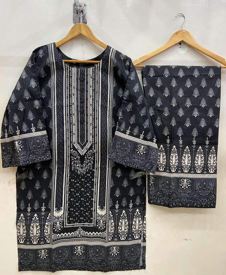 ชุดสูทผ้าฝ้ายสำหรับสุภาพสตรีปักลายสำหรับสนามหญ้าและปากีสถาน2025