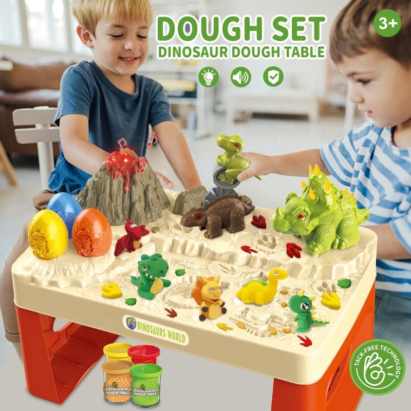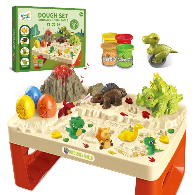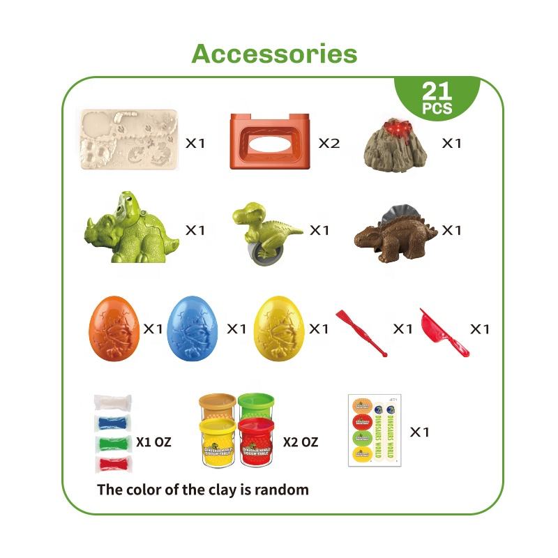 ชุดแป้งโดว์ของเล่นรูปไดโนเสาร์พร้อมไฟและเสียงดนตรีอุปกรณ์เสริม21ชิ้นสำหรับเด็ก2025