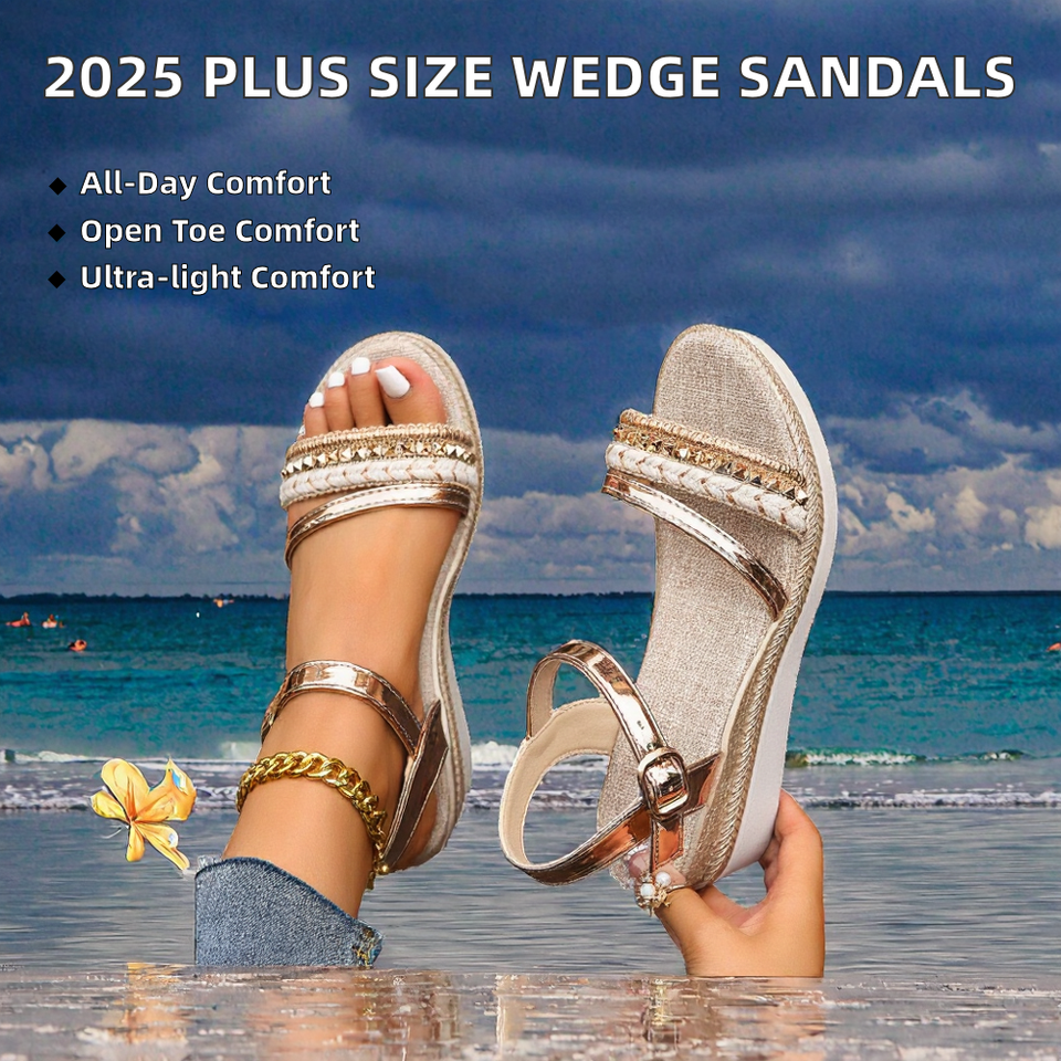 รองเท้าส้นเตารีดแบบเปิดนิ้วเท้า ไซส์ใหญ่ รุ่นปี 2025 สำหรับผู้หญิง ฤดูร้อน น้ำหนักเบา สินค้ามาใหม่ ส้นกลาง ใส่ลำลอง ส่งออก ขายส่ง