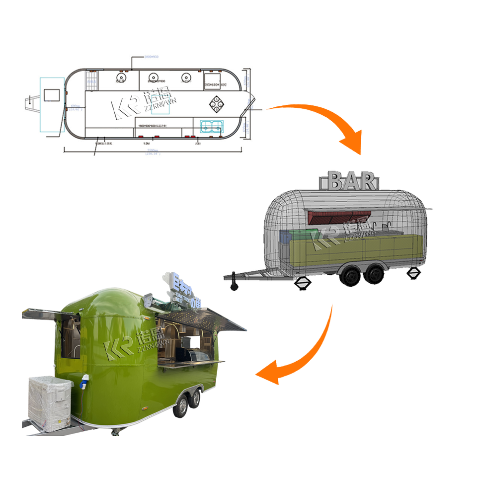 เอาต์พุตชื่อผลิตภัณฑ์:รถเข็นขายอาหารริมทาง ครัวเคลื่อนที่