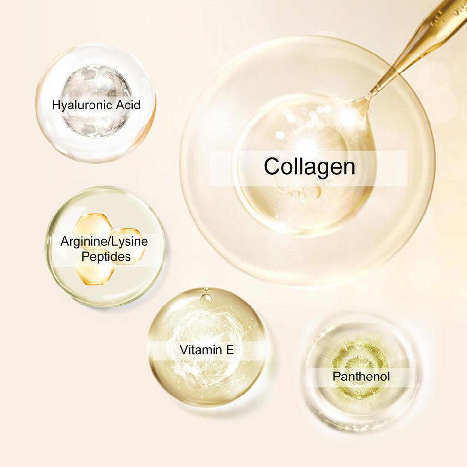 วิตามินอี, คอลลาเจน, กรดไฮยาลูโรนิก, แพนเทนอล, อาร์จินีนส่วนผสมหลัก