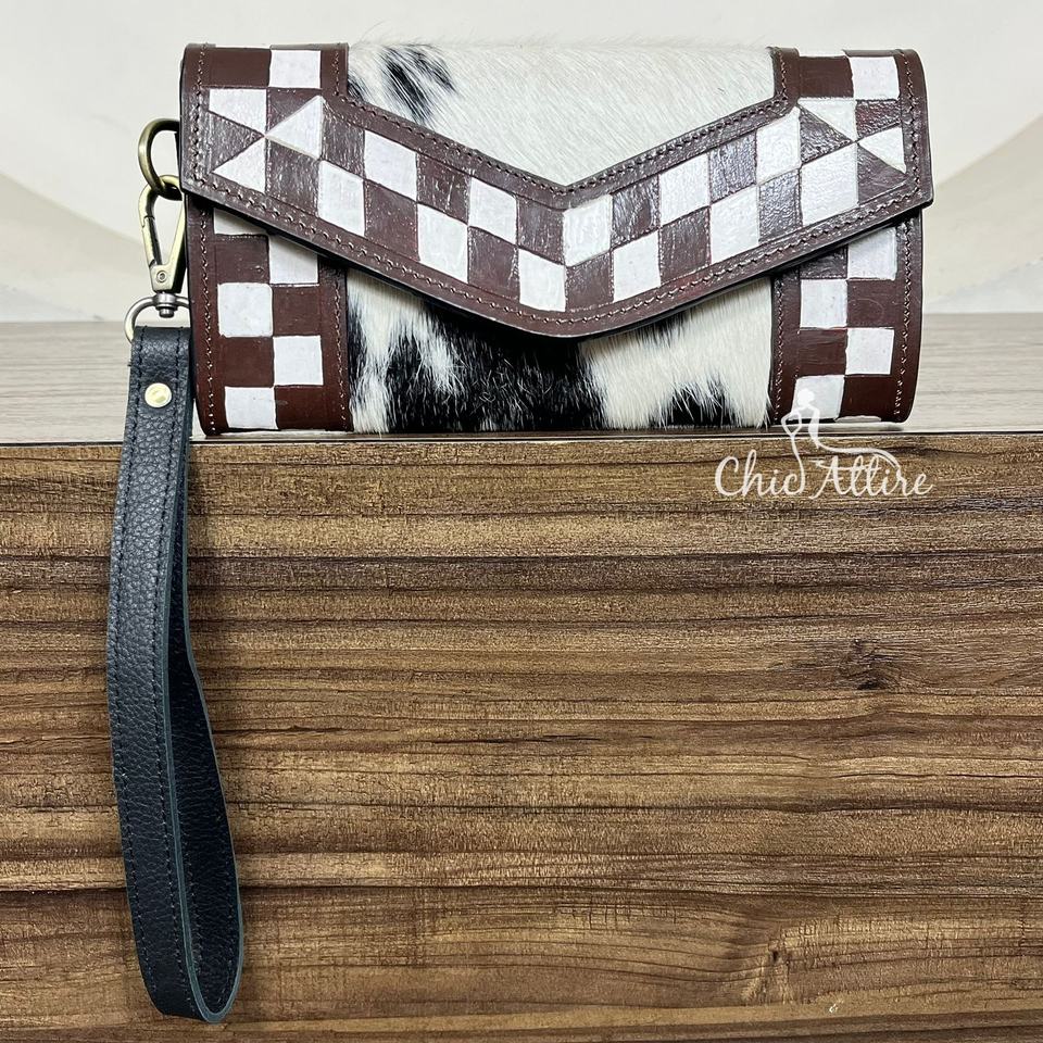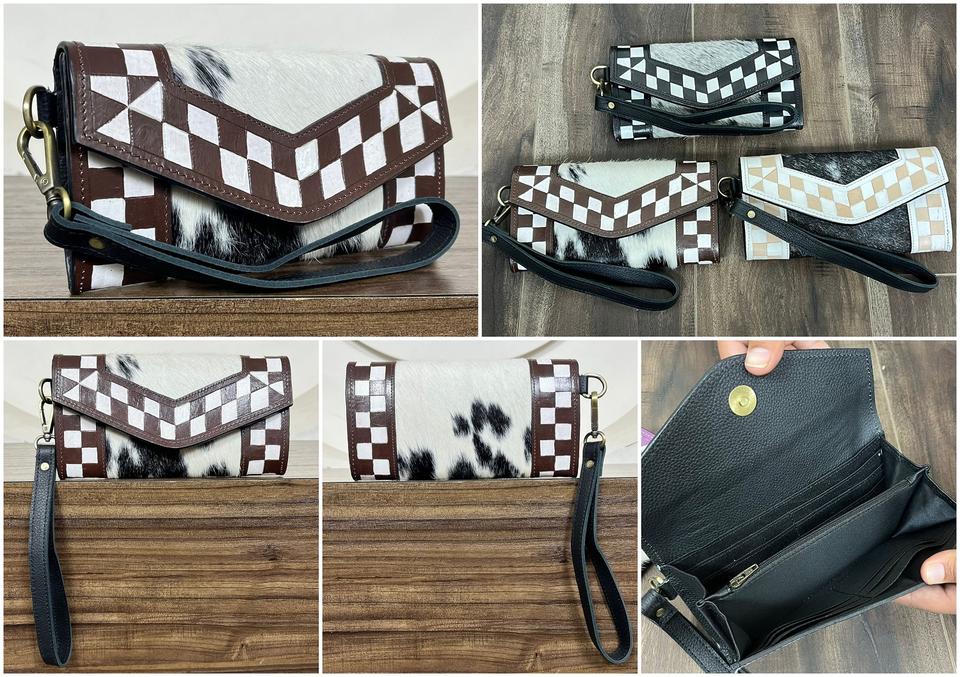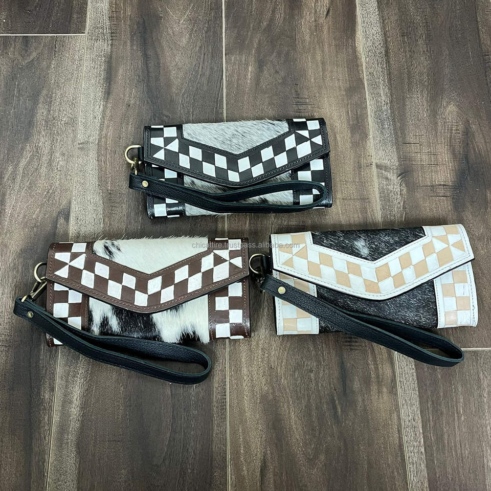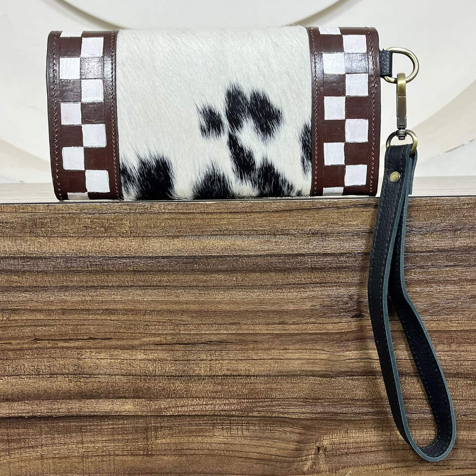 Product name:Hand Tooled Checkered Leather Fur Wallet