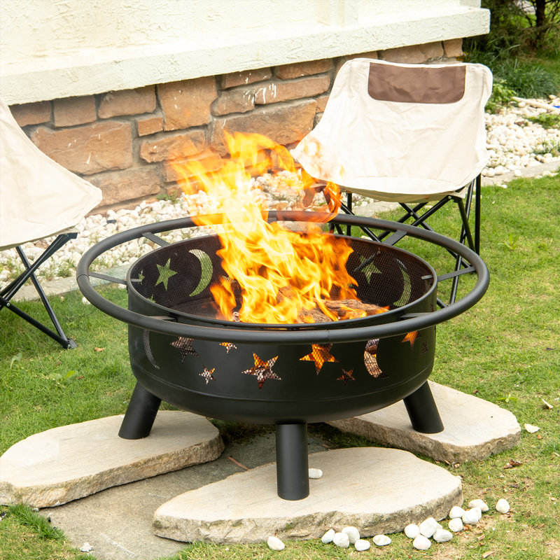 2025เตาไฟโลหะสีดำเคลือบสีดำดีไซน์พรีเมี่ยมสำหรับลานบาร์บีคิวกลางแจ้งดีไซน์แบบพรีเมียม