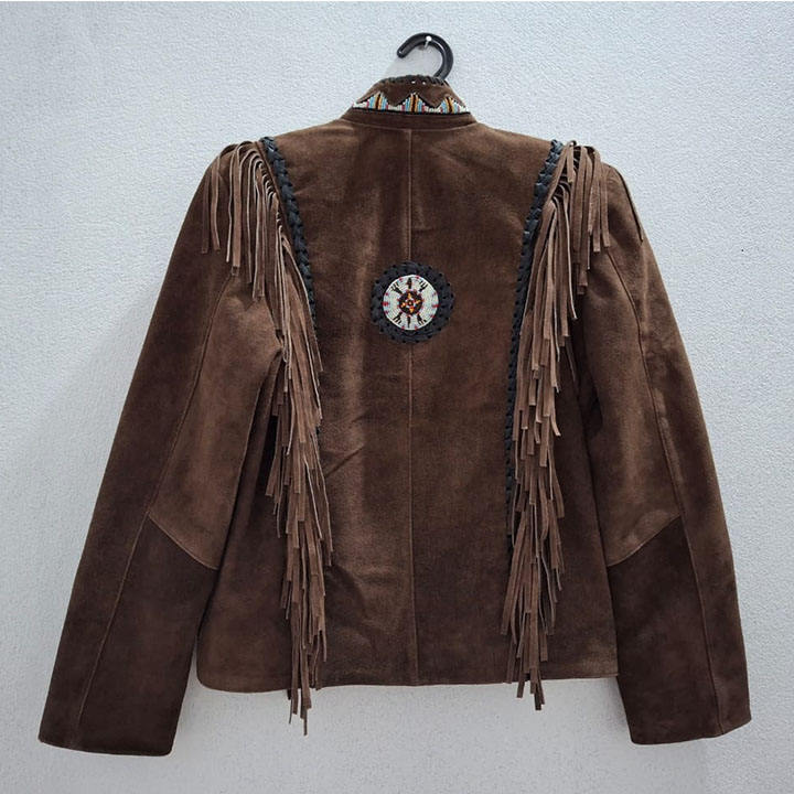 แจ็กเก็ตหนังสไตล์ตะวันตกของ2025สำหรับผู้หญิงเสื้อแจ็กเก็ตกระดูกและลูกปัดแบบสวยงาม