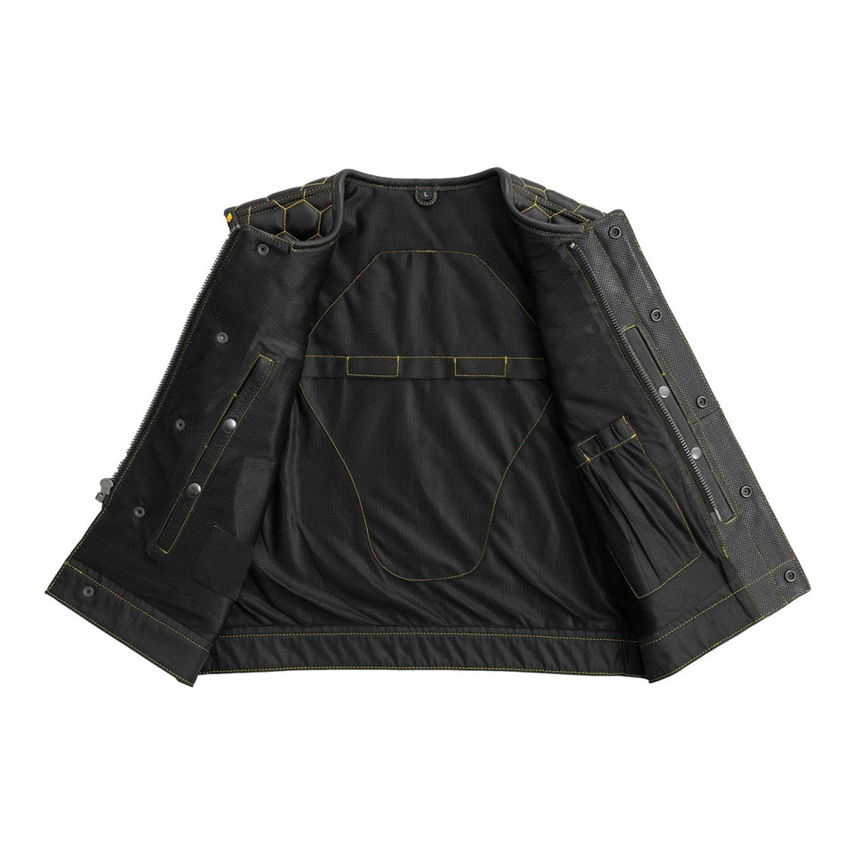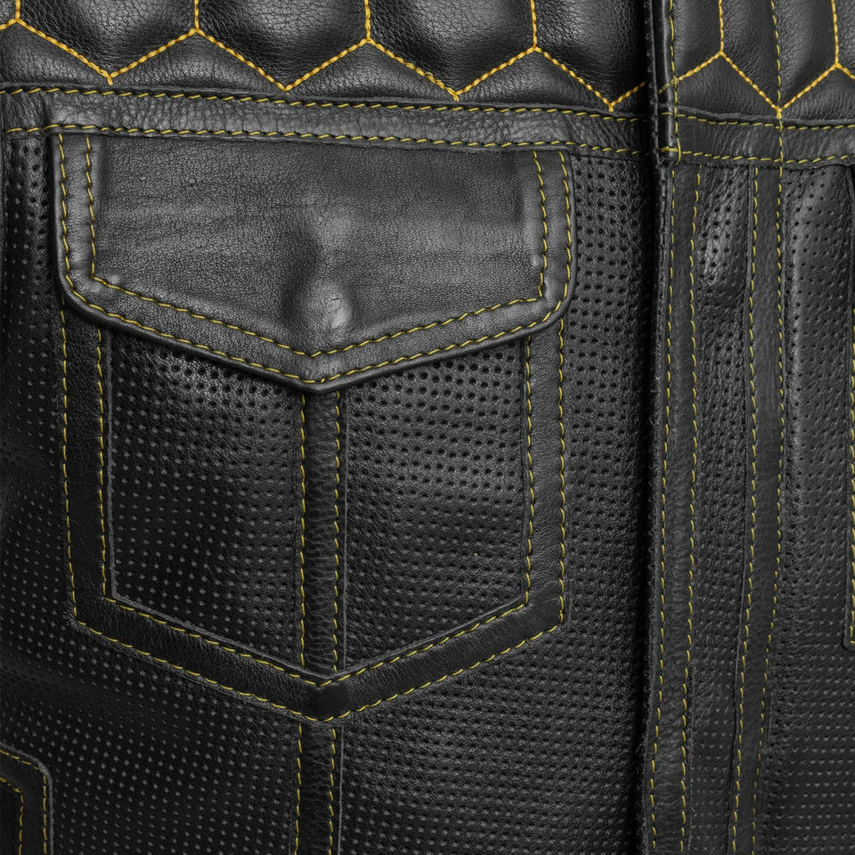 เสื้อกั๊กหนังสังเคราะห์สำหรับนักขี่มอเตอร์ไซค์ชายคุณภาพพรีเมียม ปี 2025 สีดำ แบบเจาะรู เป็นมิตรกับสิ่งแวดล้อม สำหรับฤดูหนาว คอวี