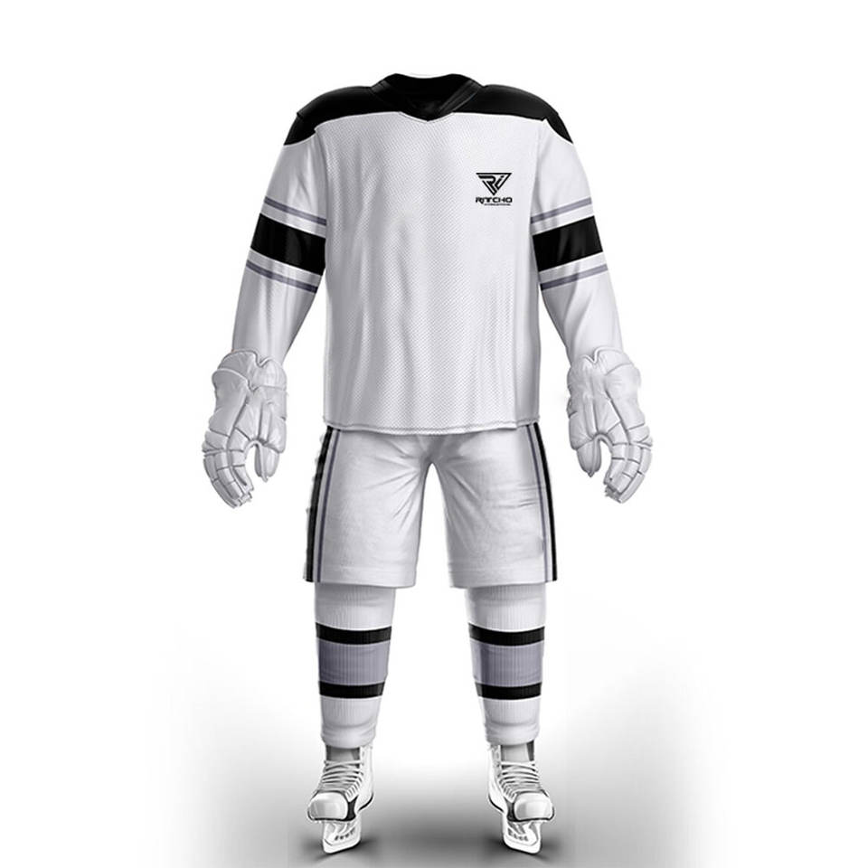 ชุดยูนิฟอร์มฮอกกี้น้ำแข็งแบบมืออาชีพปี 2025 ผลิตตามสั่ง น้ำหนักเบา แขนยาว ระบายอากาศได้ดี แห้งเร็ว ผลิตจากโพลีเอสเตอร์ 100% บริการ OEM