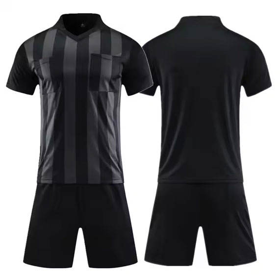 2025ชุดยูนิฟอร์มผู้ตัดสินฟุตบอลมืออาชีพเสื้อฟุตบอลคอวีแขนสั้นลายทางสวมใส่สบาย