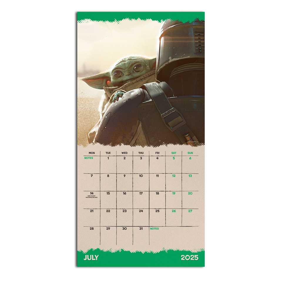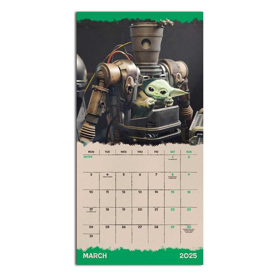 ปฏิทินโปรโมชั่นปี 2025 - เบบี้โยดา โกรกู จากภาพยนตร์เรื่องแมนดาลอเรียน พร้อมตัวละครสัญลักษณ์สำคัญ
