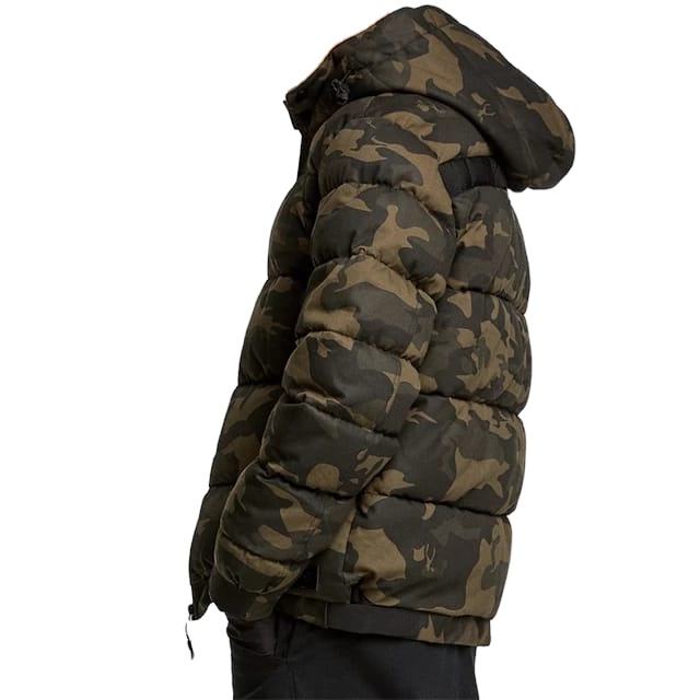 เสื้อพัฟเฟอร์พาร์กาปี 2025 โลโก้ส่วนตัว ระบายอากาศได้ดี บุด้วยขนเป็ด 50% เสื้อโค้ทกันลมสำหรับผู้ชายในฤดูหนาว แบบ OEM เสื้อแจ็คเก็ตพัฟเฟอร์ลายพรางแบบกำหนดเอง