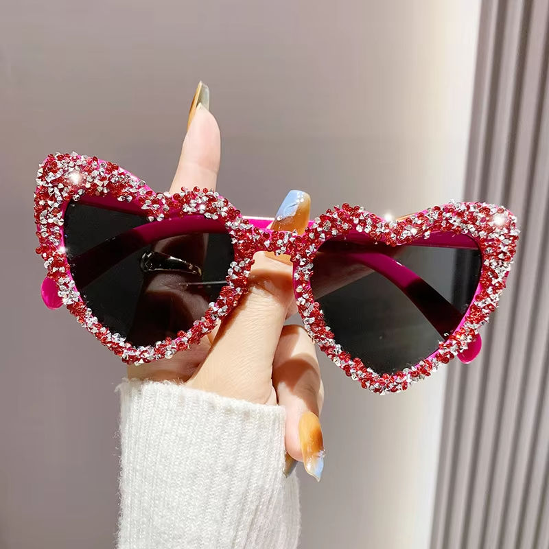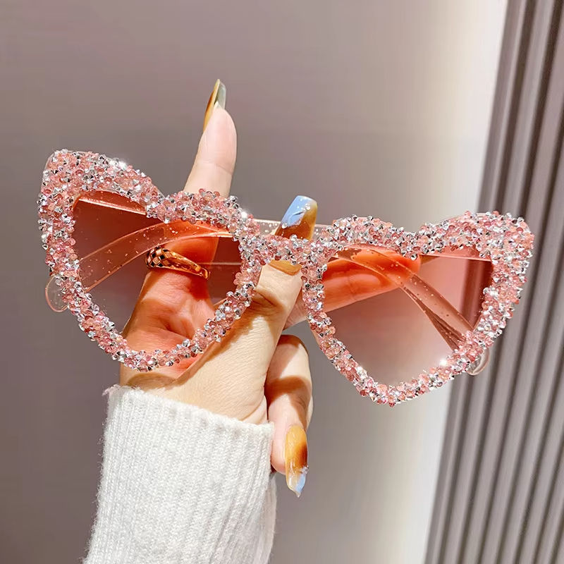แว่นกันแดดทรงหัวใจประดับมุกสไตล์เรโทรปี 2025 แฟชั่นสำหรับผู้หญิง สีชมพู แว่นตาอินเทรนด์สำหรับผู้ชาย ทรงแคทอาย แว่นกันแดดชายหาด ป้องกันรังสียูวี 400