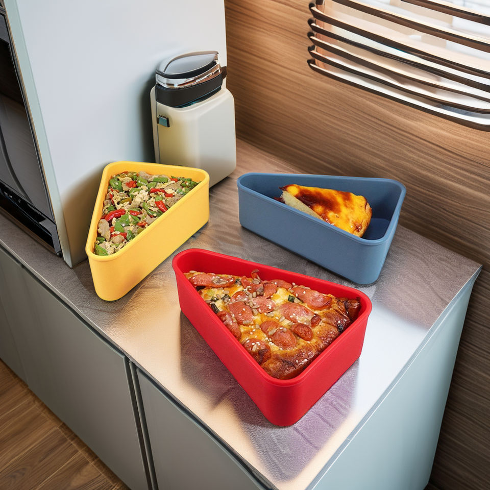 กล่องซิลิโคน2025นำกลับมาใช้ใหม่ได้พับเก็บได้กล่องพิซซ่าที่หั่นได้ภาชนะเก็บของแบบขยายได้บรรจุภัณฑ์แบบอเมริกันใช้ในบ้าน