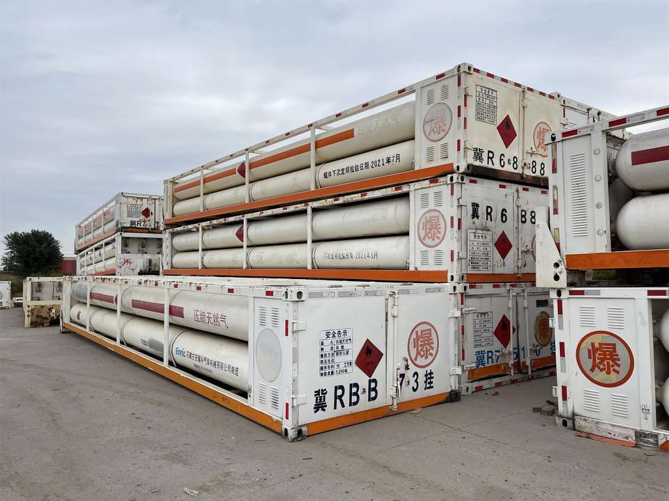 ถังแก๊สมือสอง Cng รถเทรลเลอร์ยาว Cng 20FT ถังเหล็กไร้รอยต่อความจุมาก12ท่อ2025