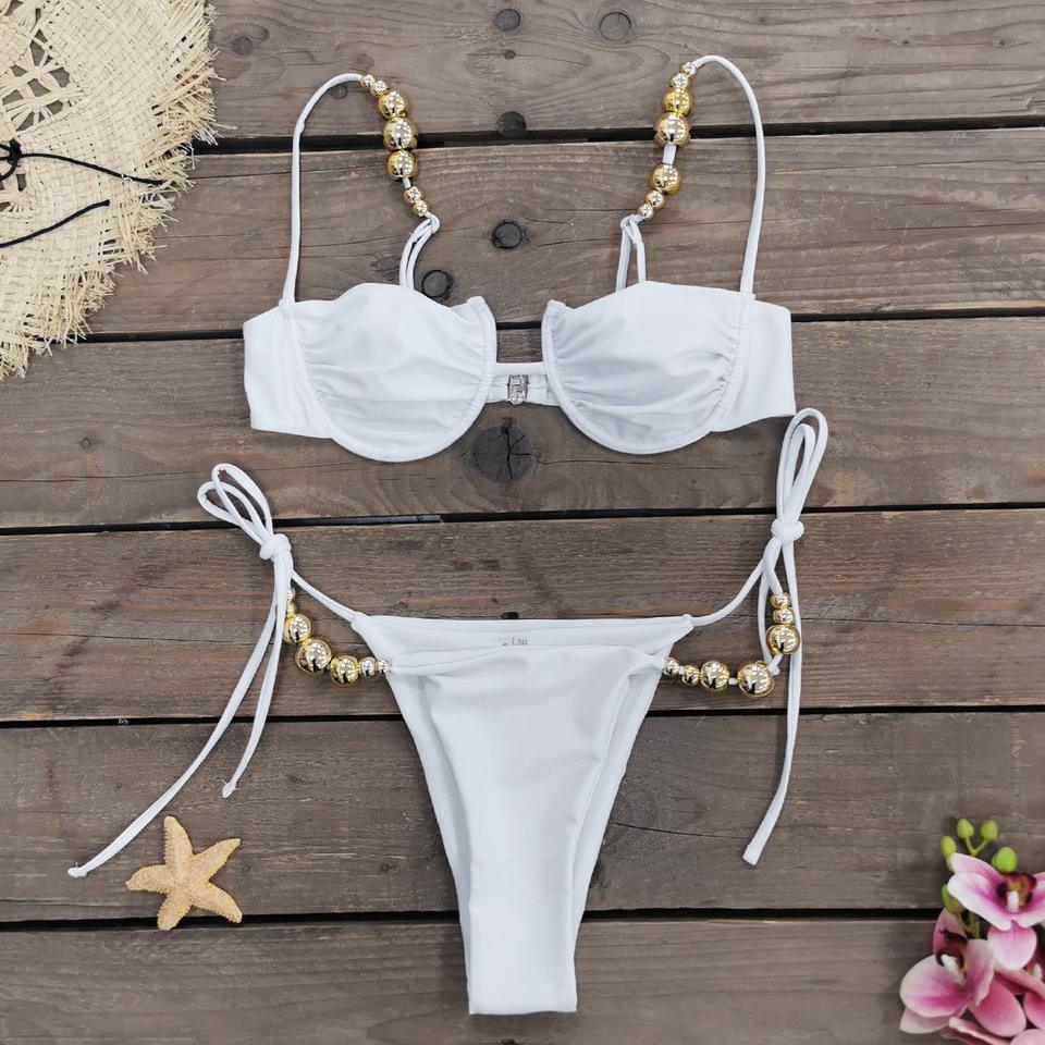 ชุดบิกินี่สองชิ้นแบบพันขึ้นเซ็กซี่สำหรับผู้หญิงชุดว่ายน้ำบิกินี่ชายหาดแบบ2025
