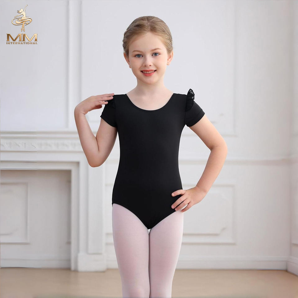 ชุดฝึกบัลเลต์ผ้าไนลอนสแปนเด็กซ์แขนสั้นสำหรับเด็กหญิงชุดเต้น-ชุดยิมนาสติกทำจากไนลอน2025
