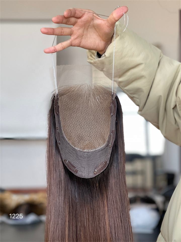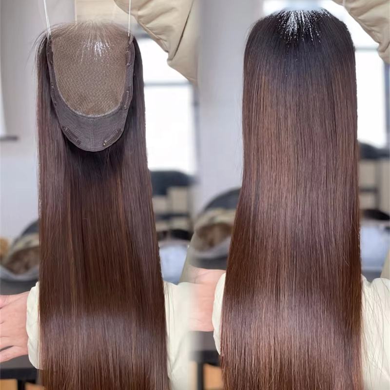 ท็อปเปอร์2025ผมตรงสำหรับผู้หญิงผิวขาวปิดด้านบนของผมด้านหน้าลูกไม้5*5