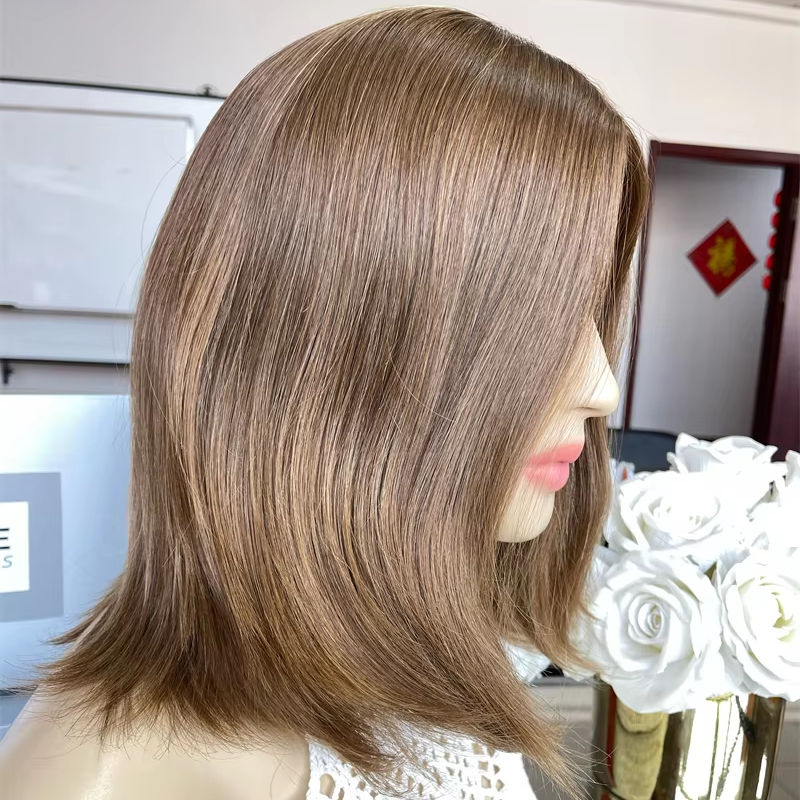 วิกผมลูกไม้ด้านบนทำจากผ้าไหม2025สำหรับผู้หญิงผมปลอมสีน้ำตาลอ่อนแบบรัสเซียทำจากผ้าไหม4*4