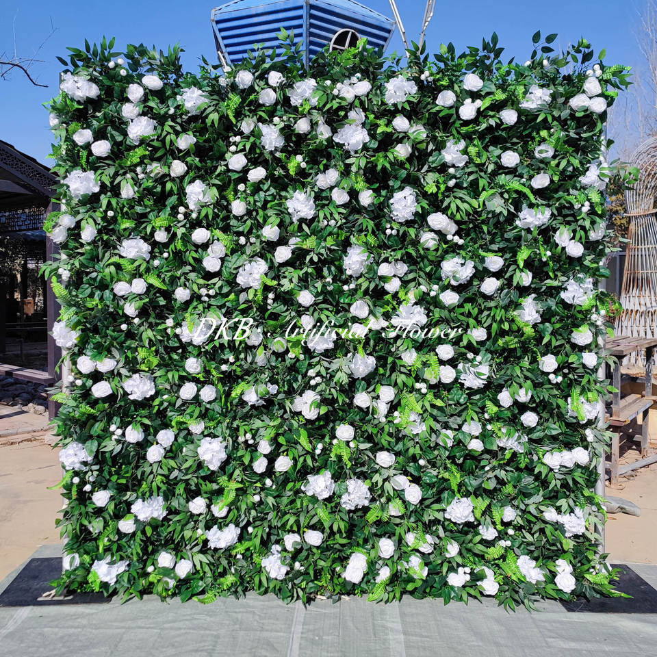 กำแพงดอกไม้ประดิษฐ์สีขาวและสีเขียวแบบเรียบง่ายสำหรับตกแต่งงานแต่งงานงาน2025