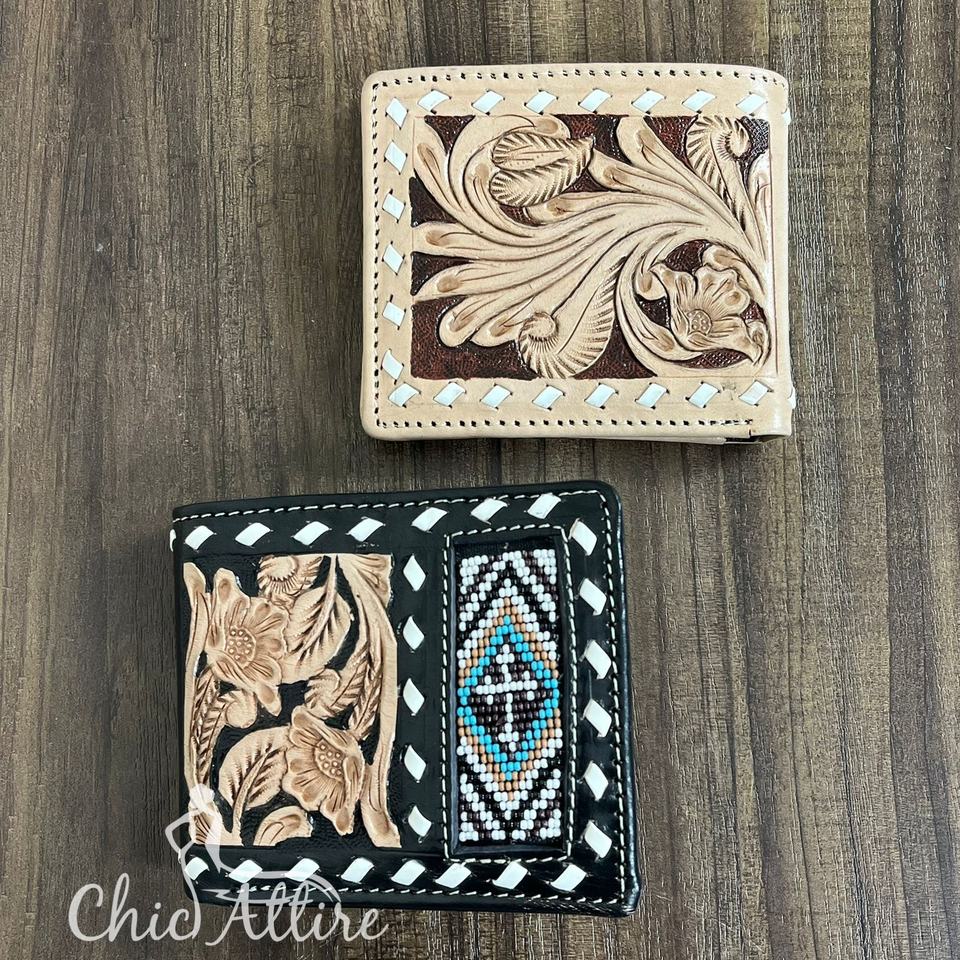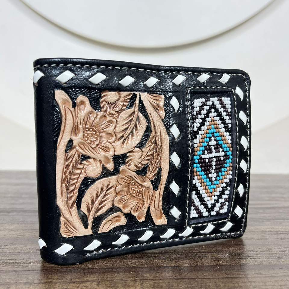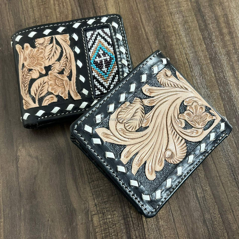 Product name:Hand Tooled Leather Beaded Men's Bifold Wallet