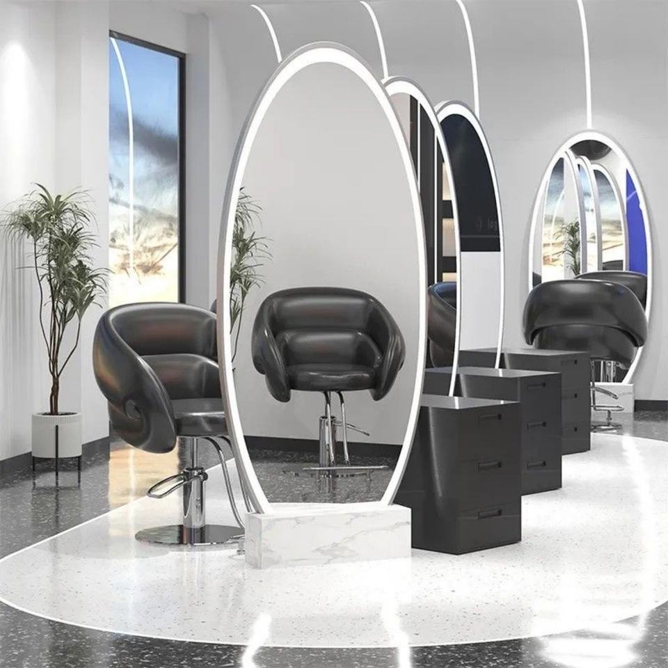 กระจกตัดผมแบบตั้งพื้นสองด้าน รุ่น 2025 Sober Net Red พร้อมไฟ LED สำหรับร้านทำผม