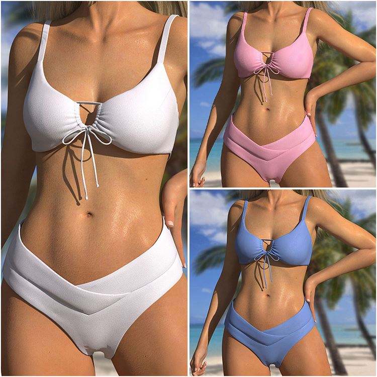 เซ็ตบิกินี่2ชิ้นขนาดเล็กหลากสีชุดว่ายน้ำชายหาดสำหรับเด็กสาวคลาสสิกแบบเรียบง่าย2025